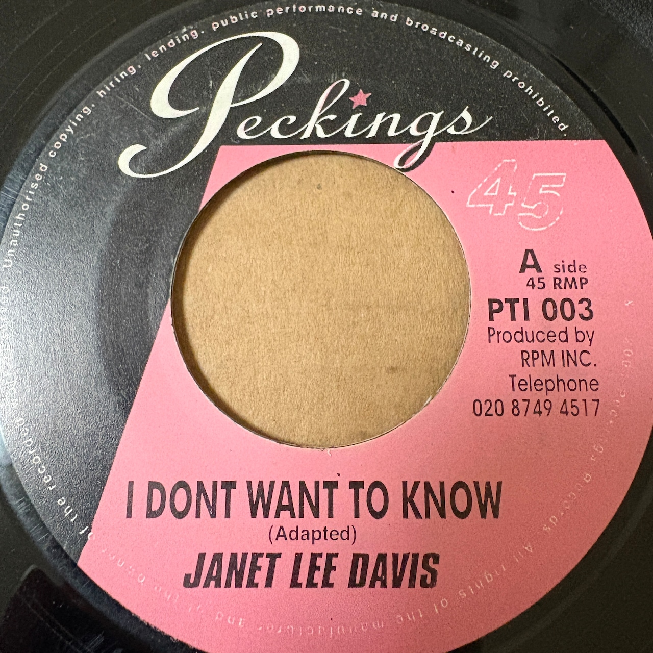 Janet Lee Davis - I Dont Want To Know / Mario Winans - I Don't Wanna Know カバー!! // Peckings Records 7inch / レゲエ レコード ショップ Reggae Records Vinyl / AA1297